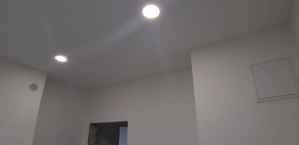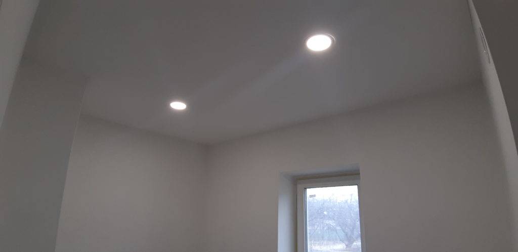 На потолочном карнизе каждые 1,5 м устанавливают дополнительные крепления (точки опоры), иначе конструкция станет проседать. Вместо одного большого устройства дизайнеры рекомендуют отдать предпочтение нескольким маленьким закрытого типа. Под натяжным потолком не видно разрывов, при этом сохраняется устойчивость сооружения.