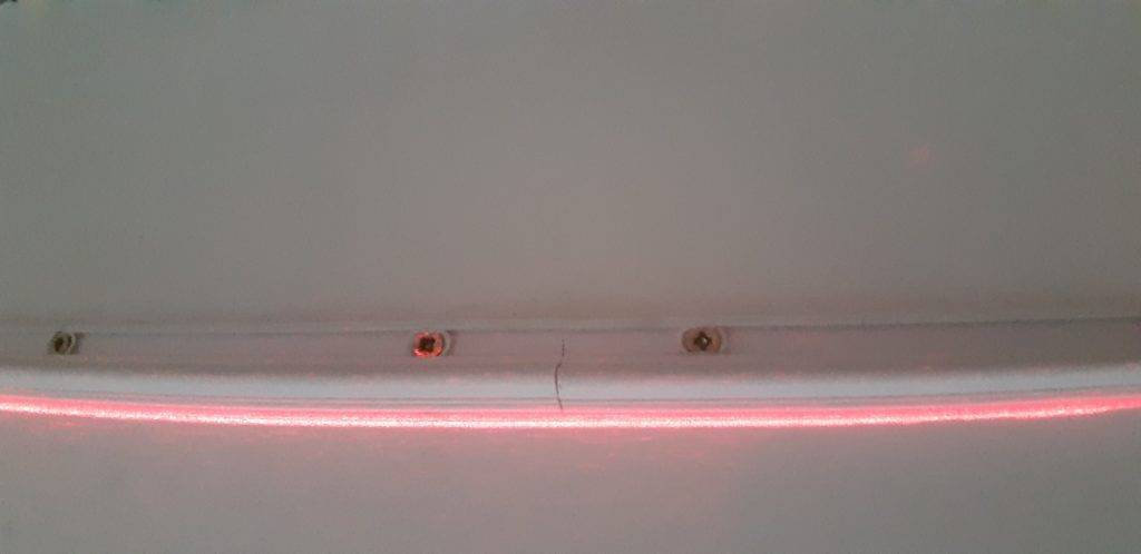 Еще один момент связан с проходом внешнего угла. Там ткань натягивается до угла и надрезается от угла вертикально вниз. Здесь главное не перестараться и не разрезать ткань слишком близко к профилю. Может так оказаться, что после заправки ткани разрез окажется не на стене, а на потолке. И тогда придется откреплять ткань с противоположной стороны и переделывать всю работу заново.