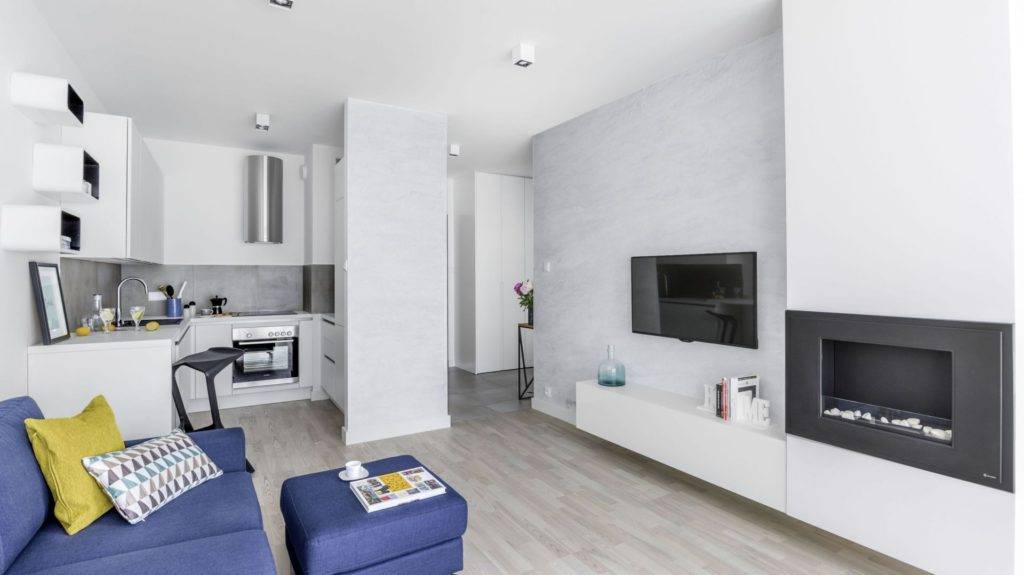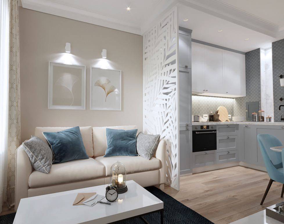 Также позаботьтесь об оптическом увеличении пространства. Вы можете легко получить это с помощью зеркал, которые могут украсить жилую зону. Украсьте небольшую гостиную с мини-кухней в светлых тонах — они всегда заставляют пространство казаться больше, чем оно есть на самом деле.