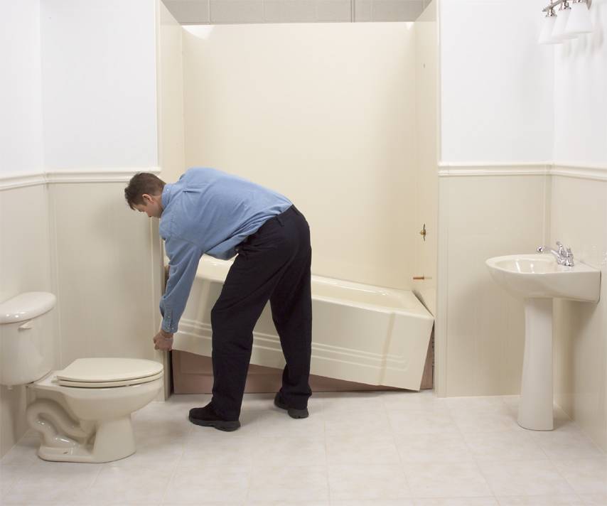 Во втором случае необходимо проверить пол. Обратите особое внимание на места, где будут находиться ножки новой ванны. Возможно, что новые ножки будут в другом месте