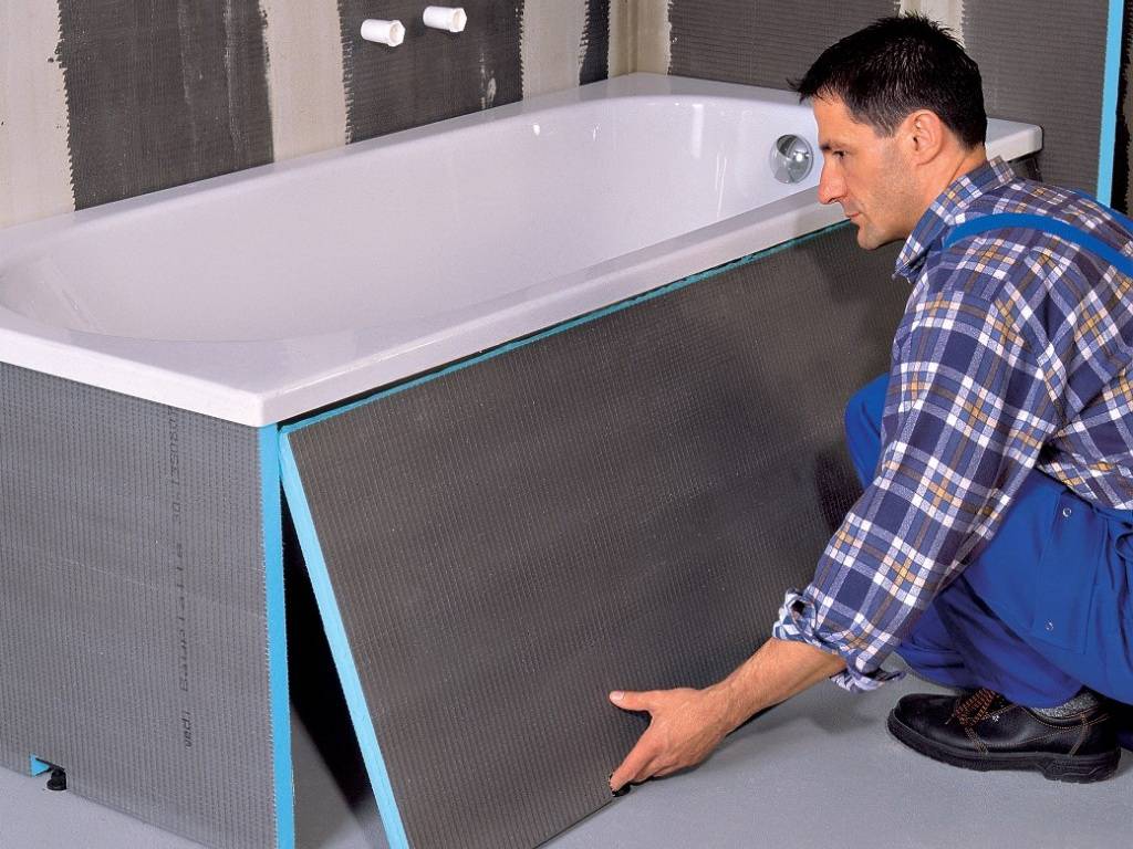 Общий принцип тот же, что описан выше. Однако при сборке каркаса стоит учесть толщину финальной отделки (например, облицовки плиткой). В ванных комнатах применяется только специальный гипсокартон с водостойким покрытием. При нарезке листов вычитайте 2 см от желаемой высоты экрана.