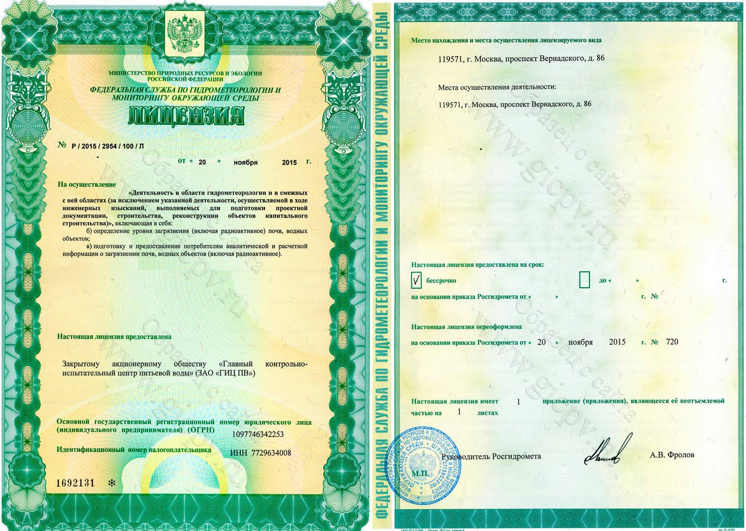 - Санитарно-эпидемиологическое заключение Управления Роспотребнадзора по зоне санитарной охраны.