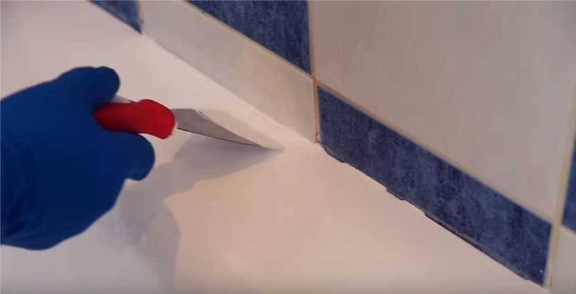Наливать на бортик ровно под стенку не получается, и выглядит край некрасиво. Берем шпатель, аккуратно распределяем состав, закрывая всю поверхность. Выровняется он сам.