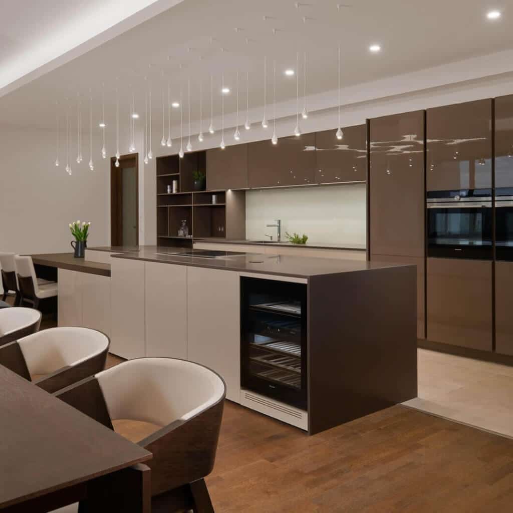 Такое достаточно популярное и ненавязчивое сочетание, может выражаться в отделке стен, обивке мебели или занавесках. Например, гостиную со светло-бежевым покрытием пола и нейтральной меблировкой, можно оформить журнальным столиком в шоколадных тонах.