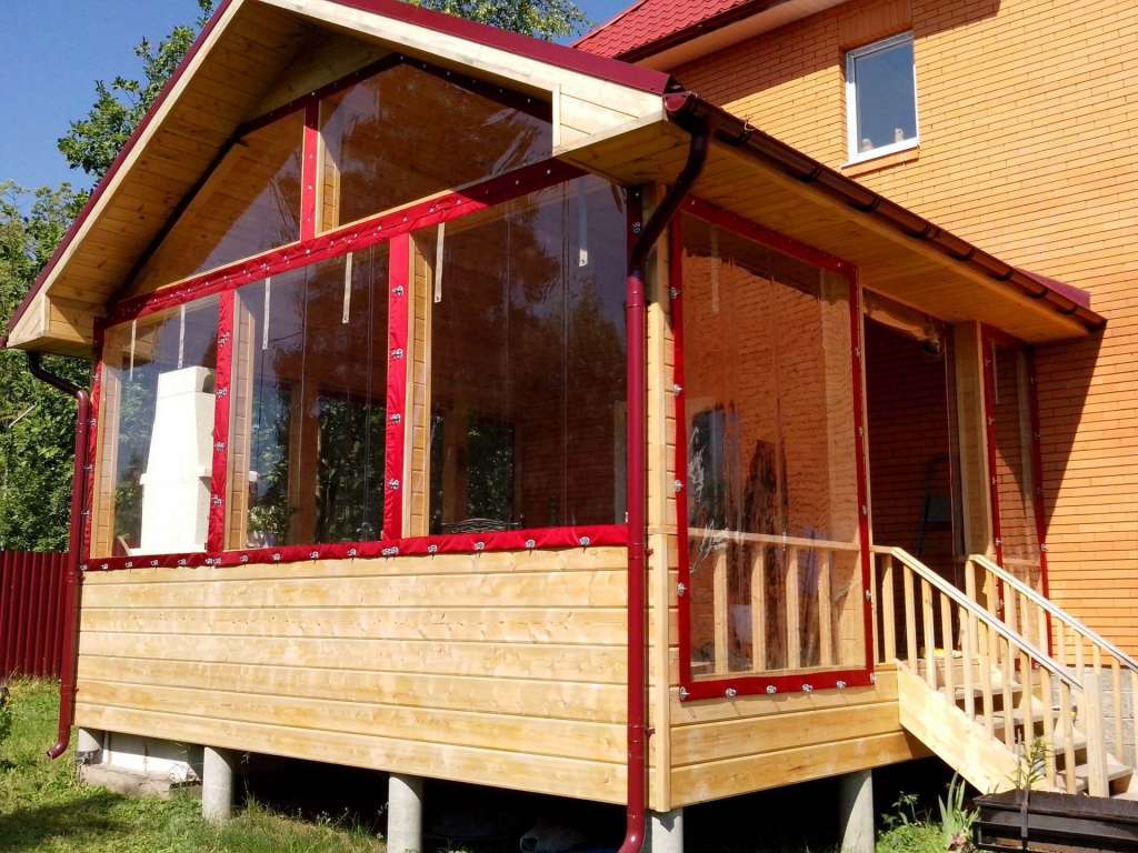 Чаще всего прозрачные шторы для веранды или других открытых помещений изготавливают из ПВХ (поливинилхлорида). Этот материал обладает рядом преимуществ: