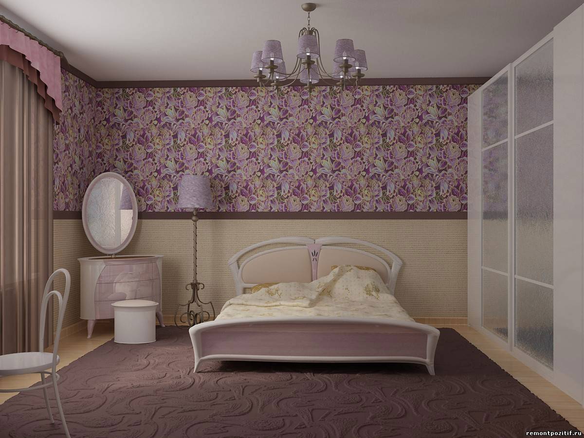 Существует множество вариантов комбинирования обоев в спальне. Самые популярные из них: