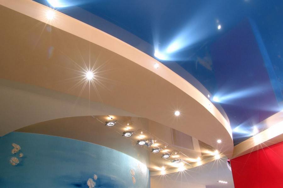 Правильно подобранные светильники подчеркивают красоту потолков и акцентируют внимание на нужных деталях интерьера и наоборот. Места установки осветительных приборов отмечаются на плане потолка заранее и учитываются при его монтаже