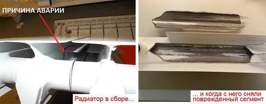 - Перепады температур – нельзя сказать, что они оказывают прямое воздействие на отопительное оборудование, но с ростом температуры растет и давление. Поэтому некоторые батареи просто не выдерживают и лопаются, так как они не рассчитаны на подобные температурные нагрузки.
