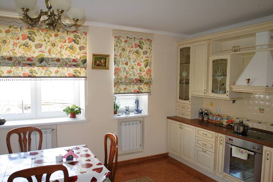 - рисунок на шторах в кухне предпочтительней только крупный (мелкий создает ощущение неопрятности).