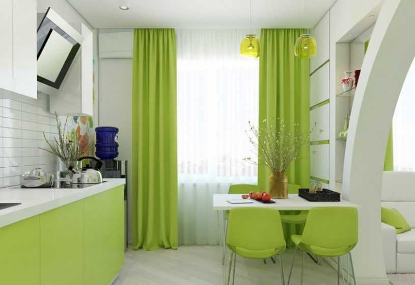 Дизайнеры утверждают, что наиболее выигрышно на небольшой кухне будут смотреться светло-зелёные, лавандовые, лиловые или голубые шторы.