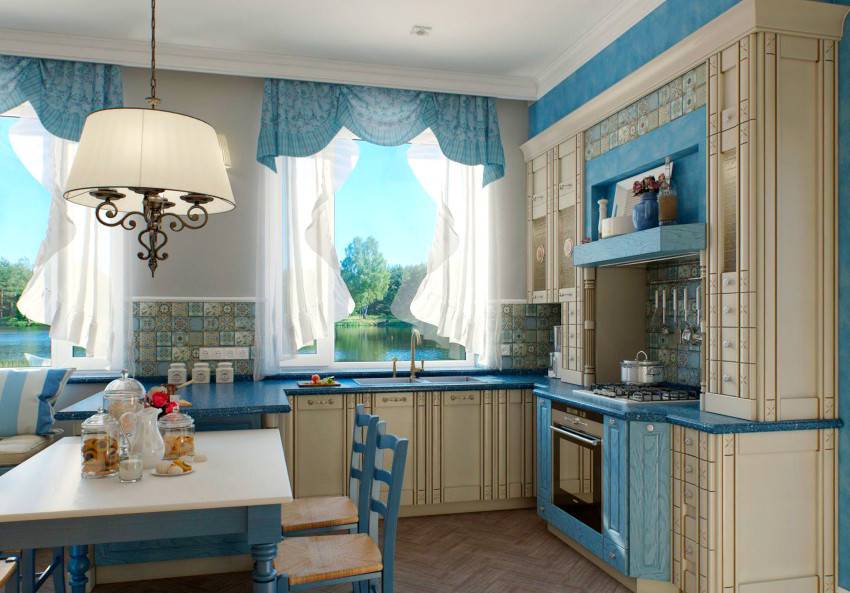 - Стиль кухонного интерьера является определяющим при выборе конструкции штор.