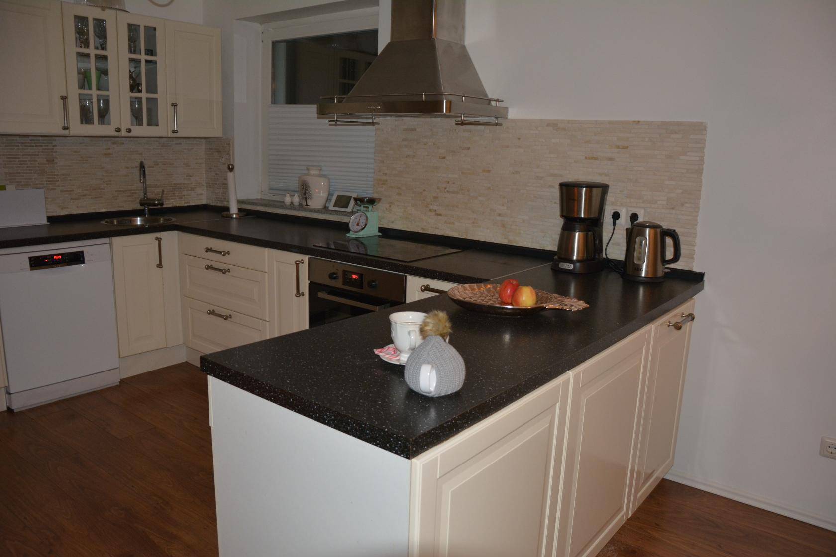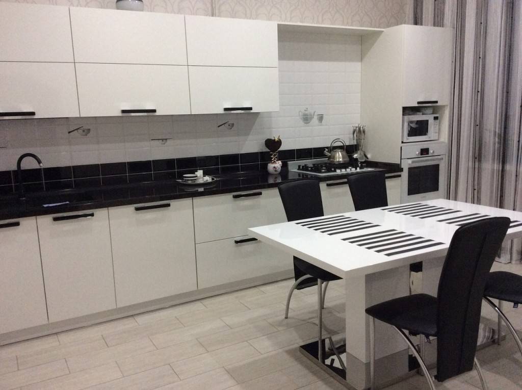 Черная столешница – это уже претензия на дизайнерское решение. Ее очень любят обладатели белых кухонных гарнитуров и почитатели скандинавского стиля, а также арт-деко и хай-тека. Нередко с помощью подобного варианта пытаются придать нотку современности кухне с гарнитуром из дерева. Эффектно подчеркивает такая столешница и яркие, сочны цвета.