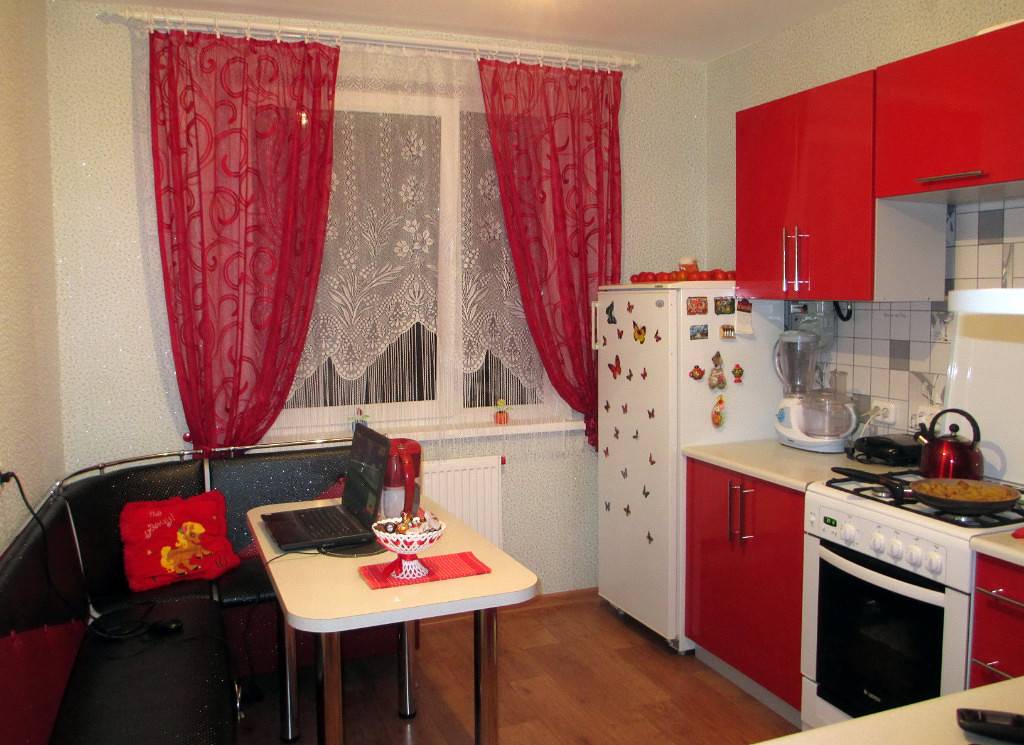 Также с помощью занавесок можно успешно визуально корректировать кухонное пространство и отдельные декоративные недостатки интерьера. Однако, какой бы из вариантов портьер ни был выбран, они обязательно должны пропускать свет и воздух, быть из безопасных качественных материалов.