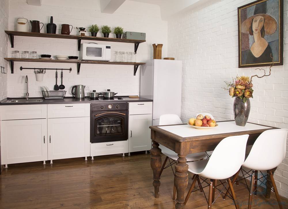 Впрочем, не всегда на маленькой кухне можно поставить что-то кроме гарнитура и небольшого обеденного стола. В этом случае вас выручать стены! Использовать их можно разными способами — не только для того, чтобы установить навесные шкафы.