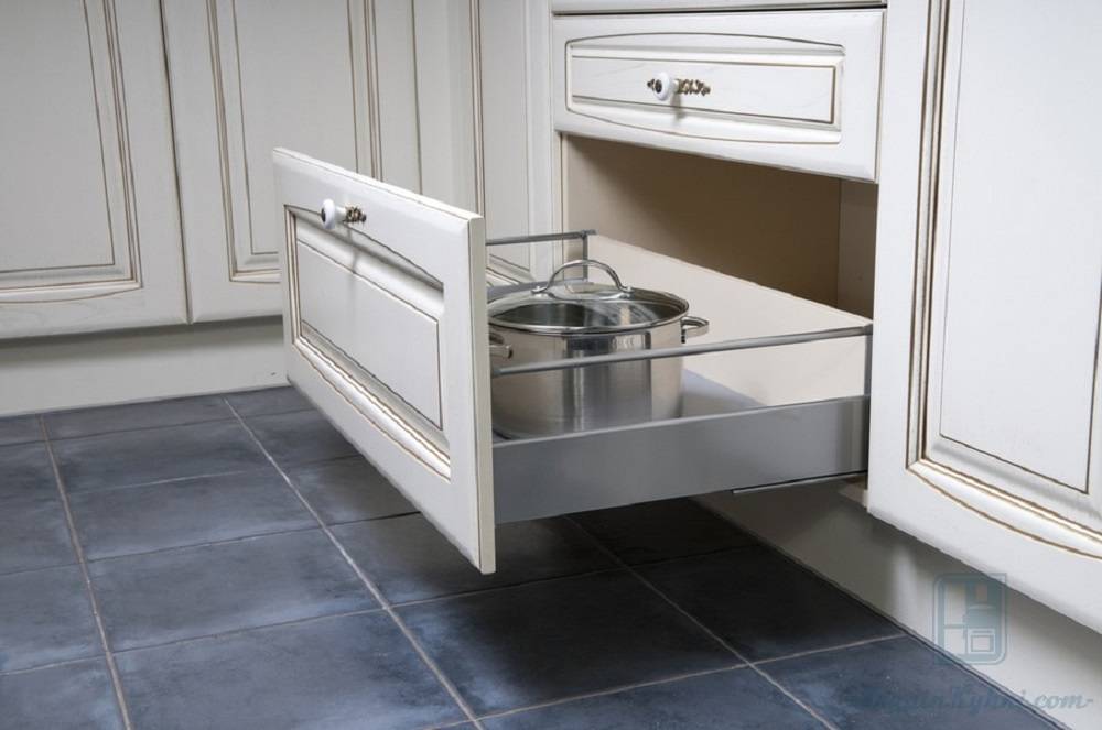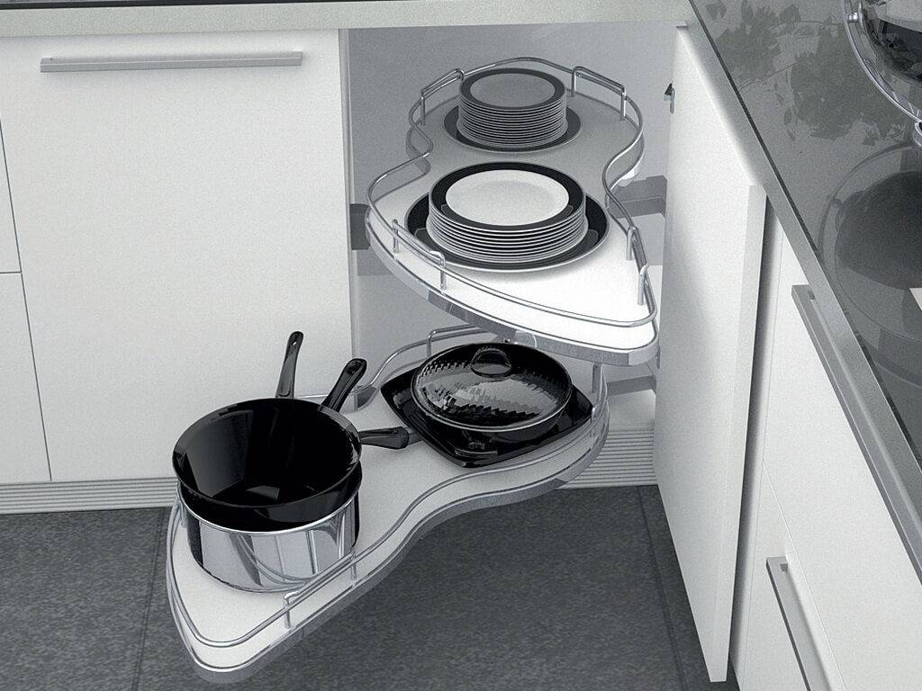 Для кухонь углового типа и для фронтальных гарнитуров разработаны различные выдвигающиеся блоки, удобные в применении. Эргономичные приспособления избавляют от необходимости нагибаться и дотягиваться до задней стенки гарнитура – нужно просто потянуть за ручку.