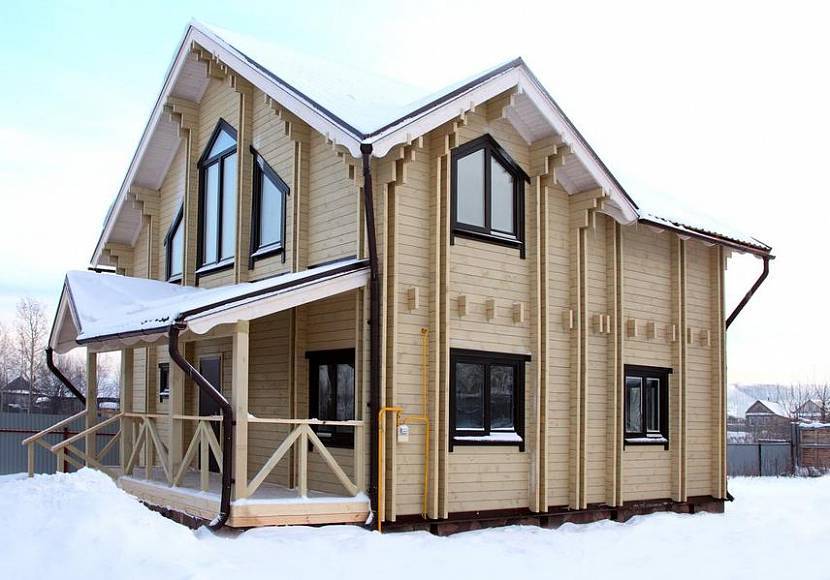 Двухэтажный дом из двойного бруса для круглогодичного проживанияИсточник www.sk-delo.ru