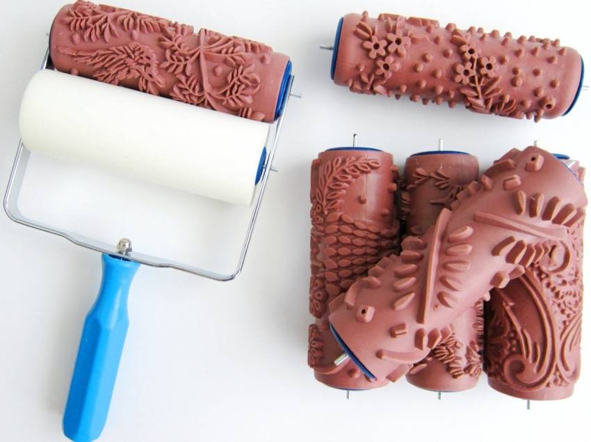 Этот тип декоративных валиков применяется чаще всего опытными профессионалами, поскольку требует определенных навыков. Изготавливаются они из жесткой резины, на которую наносятся выступы и углубления, за счет чего и получается необходимый рисунок.
