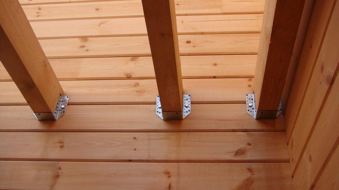 В каркасе любой террасы лаги можно прикрепить несколькими способами. Лучше всего использовать металлические подвесы.