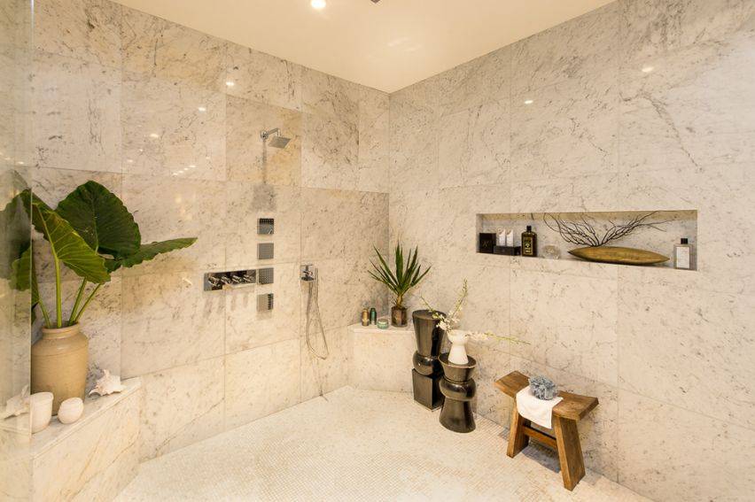 Полки над ванной — благодаря им мыло и шампунь для волос будут легко доступны.