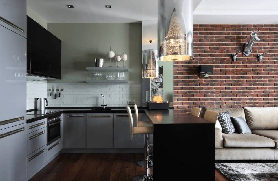 Контрастные оттенки на кухне все также можно использовать. Однако рекомендуем выбирать не классический черный и белый цвет. Присмотритесь к различным оттенкам, таким как графитовый или темно-серый, а также молочный, бежевый. Подобные сочетания смотрятся не менее эффектно и стильно.
