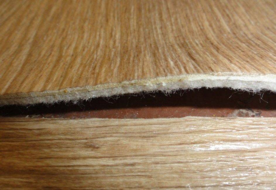 Слой изнанки должен быть однородным, без посторонних вкраплений и перепадов толщины — если таковые присутствуют, лучше выбрать другую модель: такой линолеум долго не прослужит. Также модель не подойдет, если лист сопротивляется укладке на пол, лежит неровно и пузырится.