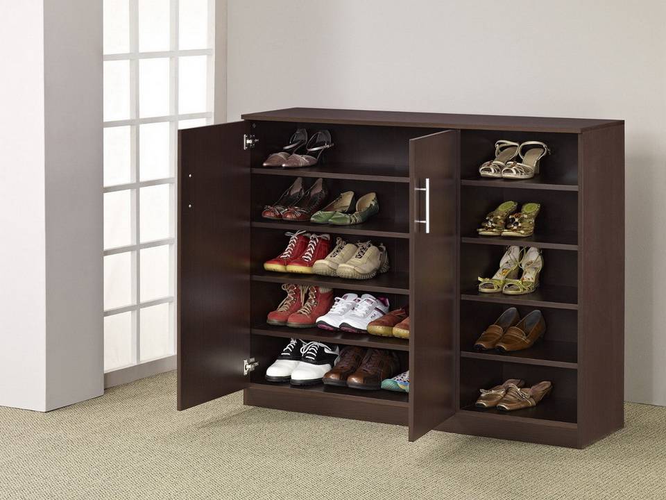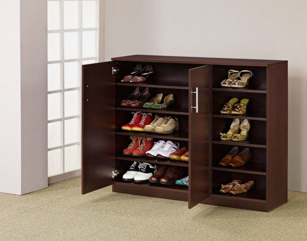 Существуют и традиционные модели мебели для обуви, оборудованные стационарными полками. В зависимости от планируемых расходов, выбирают открытые конструкции по типу стеллажа или закрытые тумбы с дверцами.