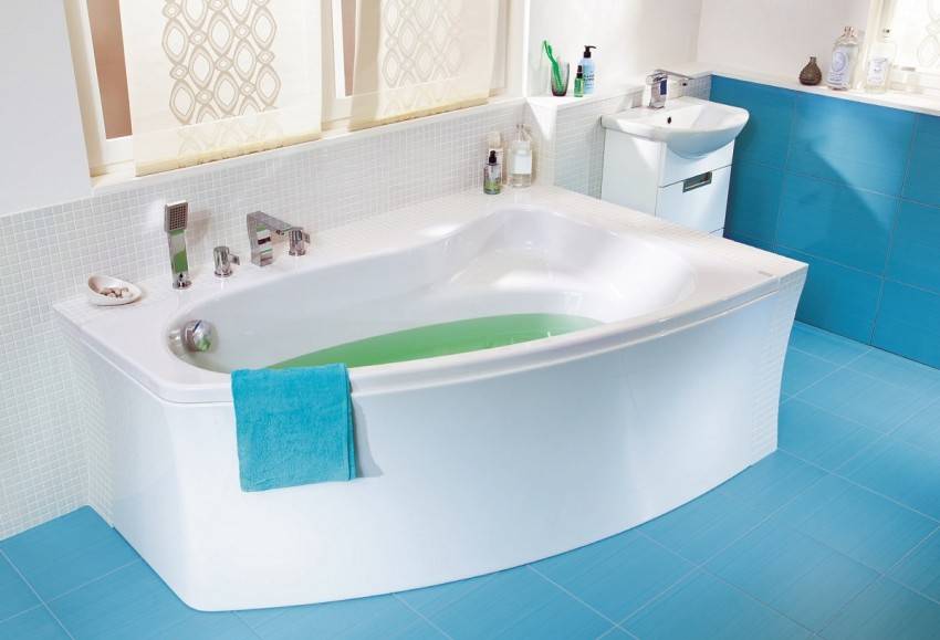 - Планировки ванной комнаты. Если у вас небольшой ванная комната, то предпочтение следует отдавать асимметричным ваннам, которые не занимают много места, оставаясь, при этом, комфортными и вместительными. В этом плане широкий выбор предоставляют производители акриловых ванн.