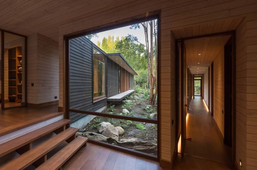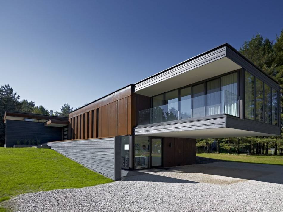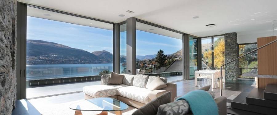 Стилевое направление, в котором можно оформить дом с панорамными окнами является минимализм.