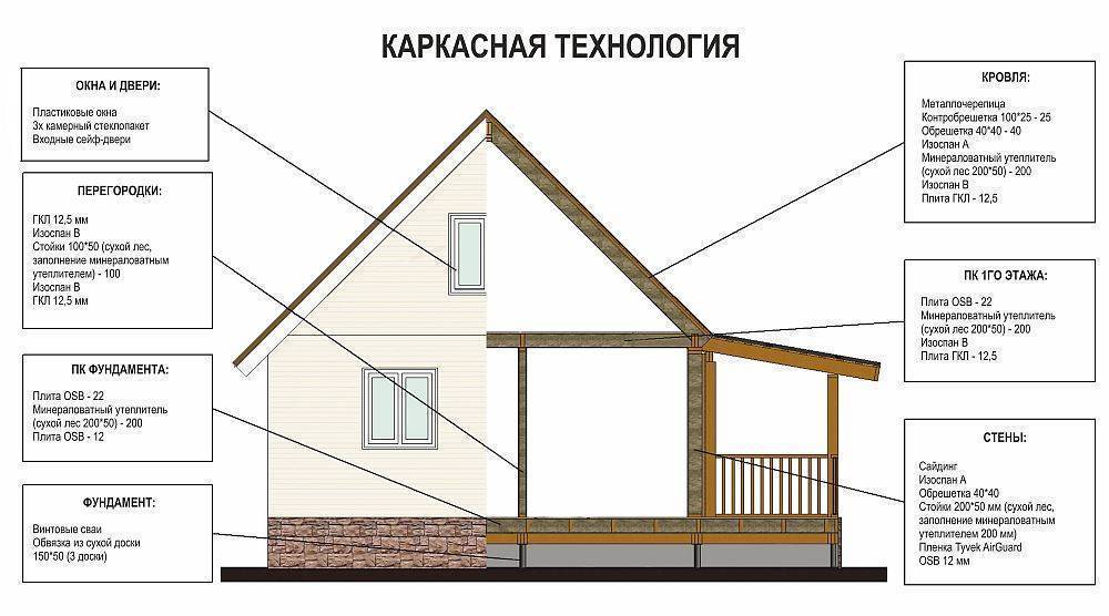 Конструкция каркасного дома