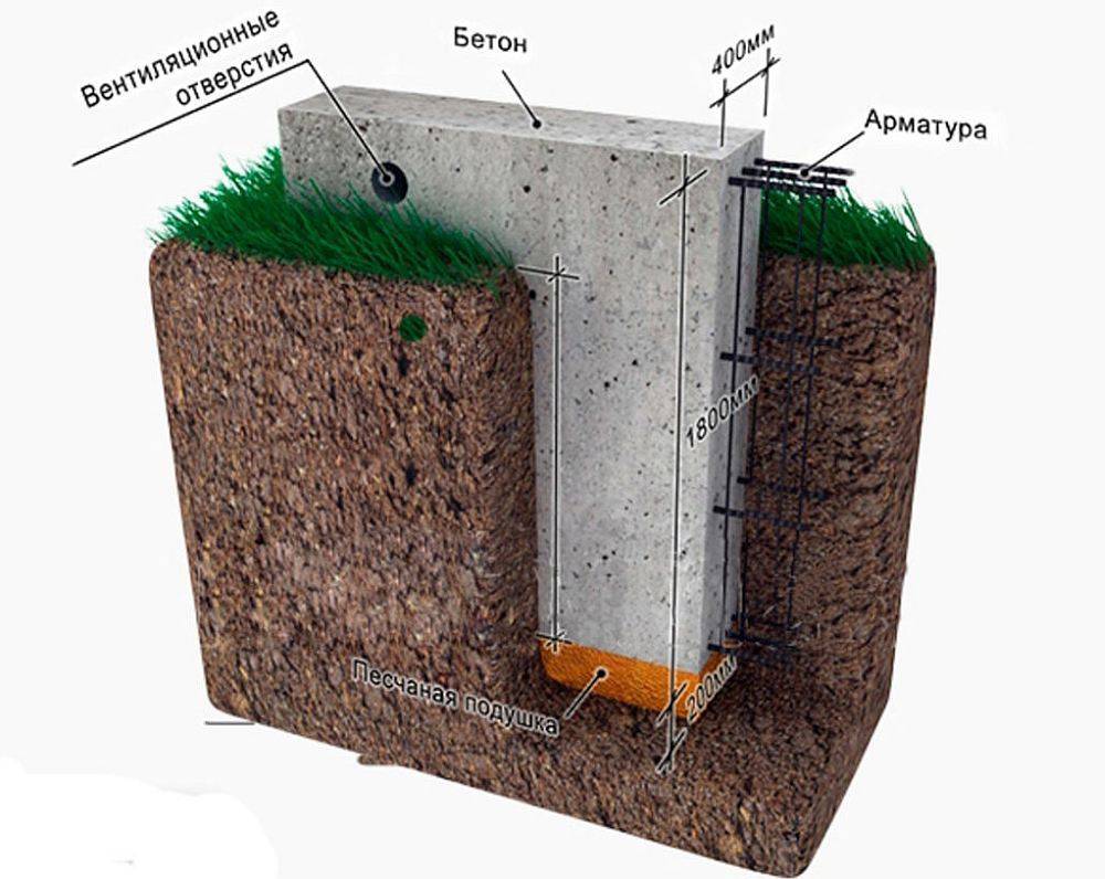 Сооружение фундамента начинают с основания — площадку выравнивают, очищают от дерна, затем роют траншеи или готовят подушку из щебня, в зависимости от грунта.