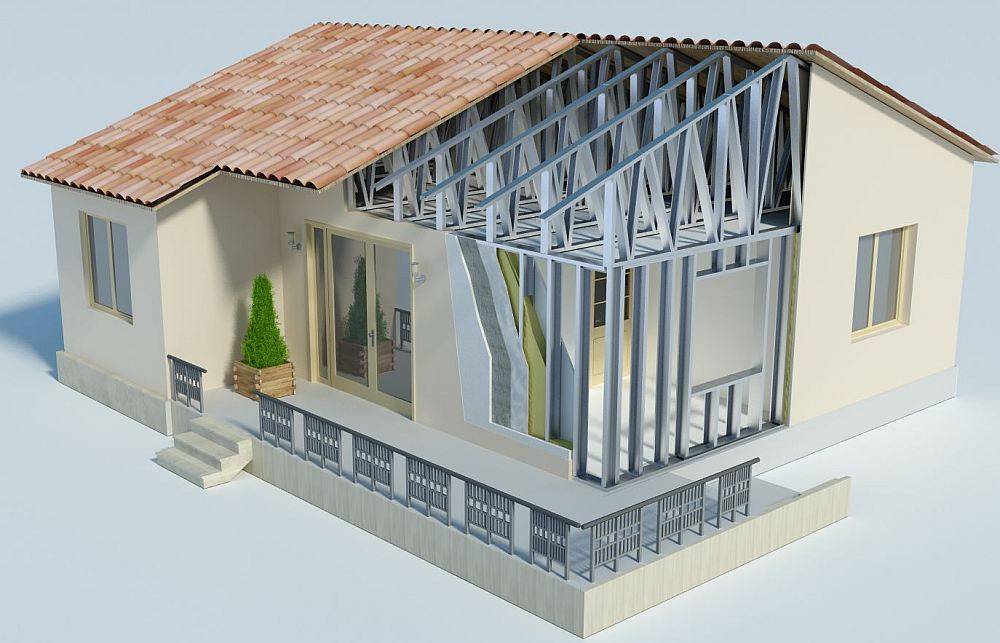 Использование каркаса из оцинкованного не подверженного коррозии металлического термопрофиля увеличивает срок эксплуатации дома. Перфорационные отверстия делают профиль легким, поэтому у строения малый вес, но каркасу не страшны гниение и пожары. Основная сложность в работе с термопрофилем — герметизация, если не соблюдены правила строительства, будут лишние теплопотери.