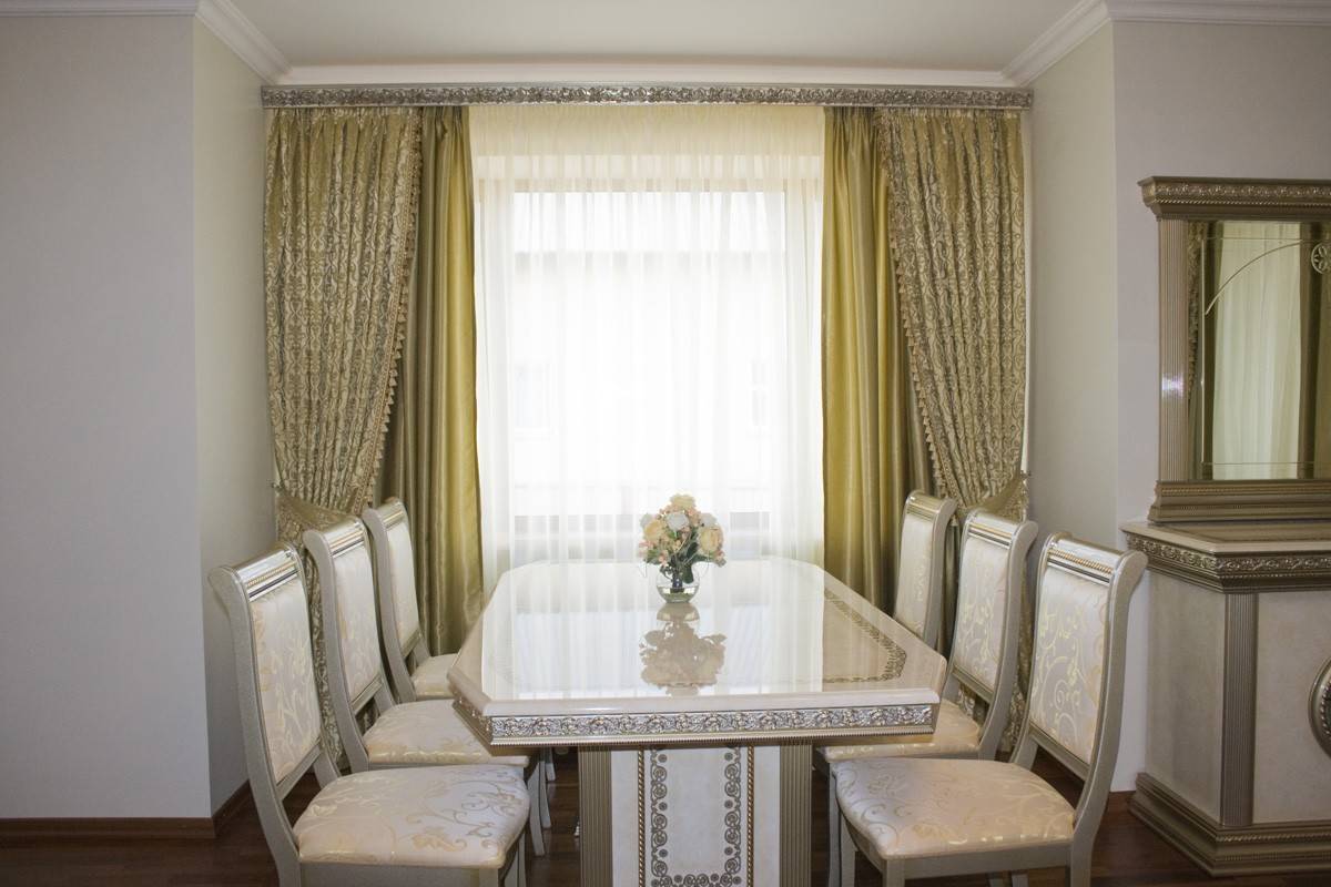 - Стандартные длинные шторы, размер этого типа штор равен расстоянию от карниза до пола минус 1 -2 сантиметра