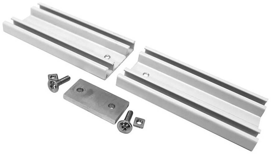 - В кронштейны установите пластину, стабилизируйте и зафиксируйте специальным зажимом, который есть в комплекте.