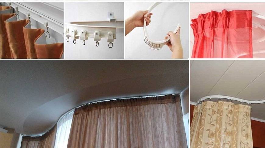 Они отлично гнуться в горизонтальной плоскости. В этом случае есть возможность использовать одно или два больших полотна для штор а не много узких. Для таких окон есть три решения: