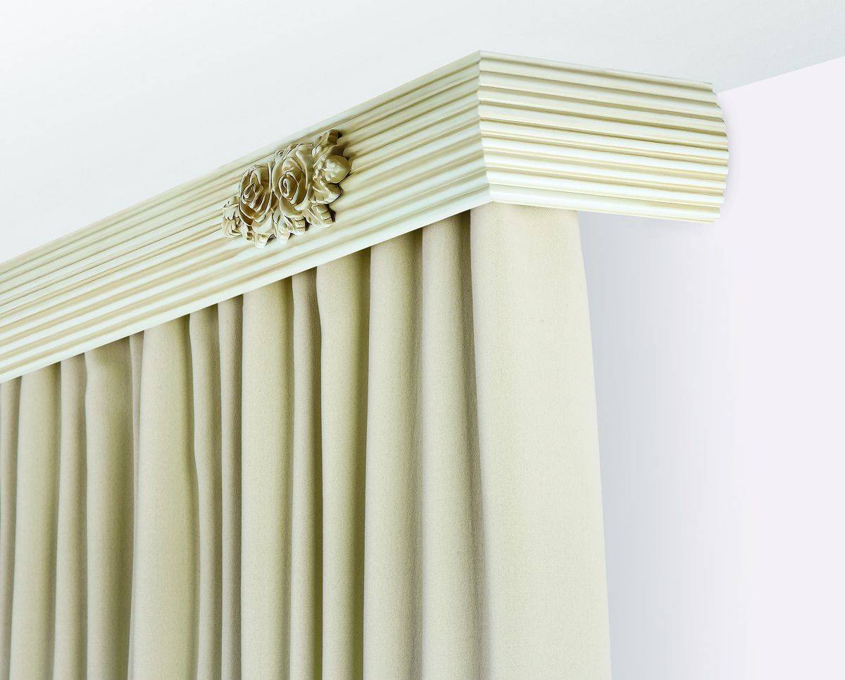 Декоративные карнизы с флеронами делают из дерева или металла. По стилю, размеру и цвету они бывают самыми разными. Они варьирующиеся от современных до классических, придают окну декоративный штрих и сочетаются почти с любыми шторами. Подберите к ним кольца с крючками или прищепками — в зависимости от того, какого впечатления хотите добиться.