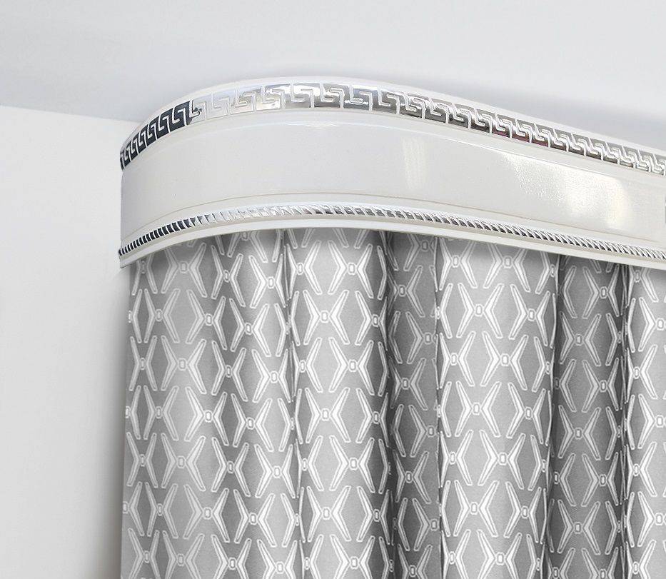 Для эркерных или угловых окон жесткие карнизы не подходят. Если для угловых окон еще можно состыковать два линейных карниза, то с эркерами такой фокус не проходит. Их линия выгибается плавно, стыковать приходится много коротких отрезков, что смотрится, мягко говоря, «не очень». Потому и нужны гибкие карнизы.