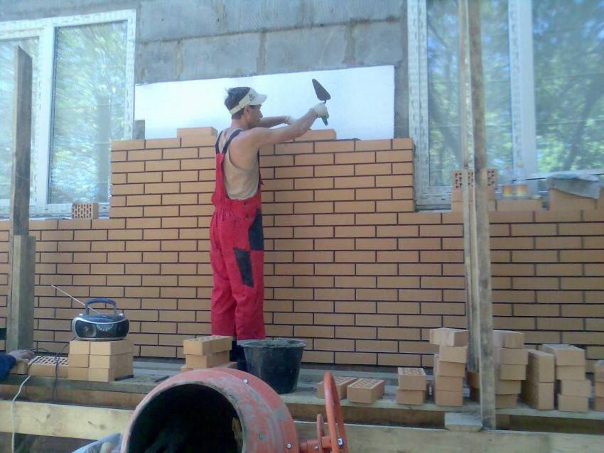 - промежуток между облицовкой и старым строением оставляют воздушную прослойку либо укладывают утеплитель, ни в коем случае не забрасывая его остатками раствора.