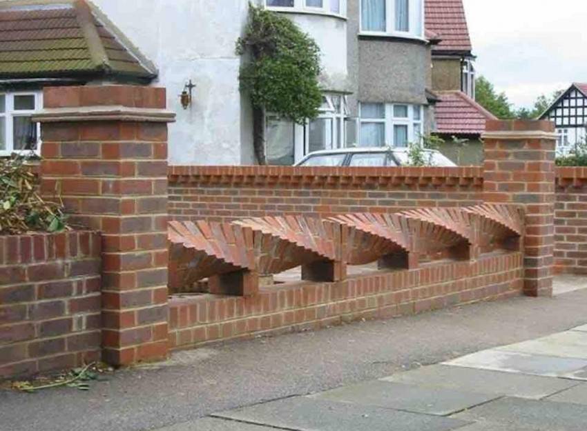 Несмотря на множество видов кладок, не имея опыта, лучше начать с ложкового способа, перевязки в полкирпича и расшивки в 8-10 мм.
