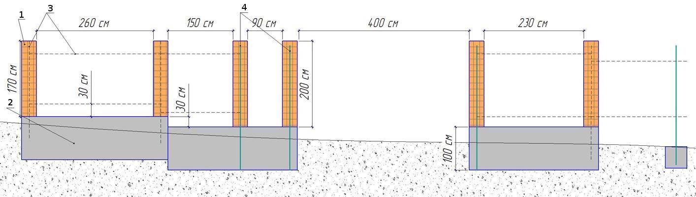 Таким же методом можно рассчитать, сколько потребуется сырья для создания связывающей стены между опорами (если она указана в проекте).