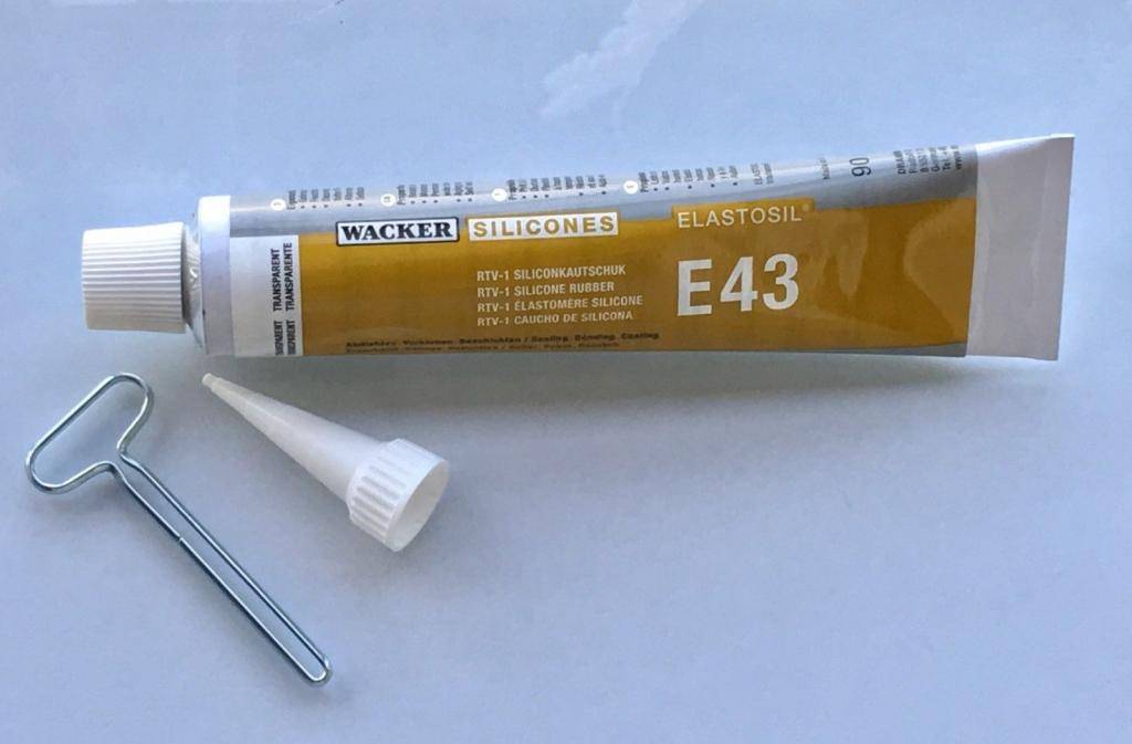 - Герметик ELASTOSIL E43 немецкой фирмы. Средство не требует применения вещества для адгезии, используется для соединения и герметизации стекла, пластиков, керамики, дерева, силиконовой резины, металлов и других поверхностей. Обладает самовыравнивающимися свойствами.
