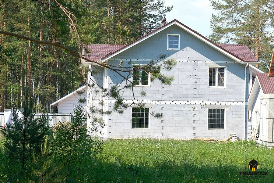 Дом из газобетона (Твинблока) построенный на ППУ клей-пене