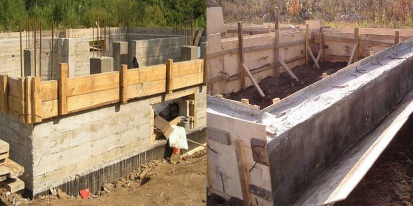 Существует очень много разновидностей опалубки. Для тяжелых конструкций используют ленточный фундамент. Это конструкция, которая имеет вид вкопанной стены в грунт.