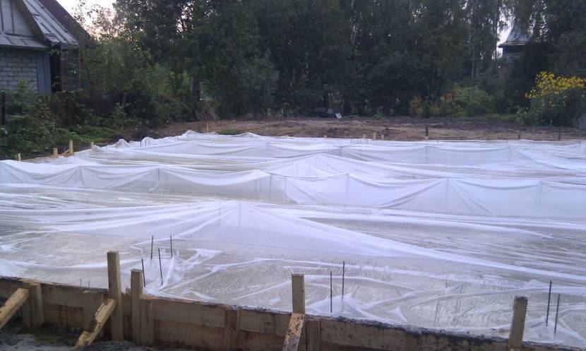 Укрытие бетона плёнкой для создания оптимальной влажностиИсточник obzorstroy.ru