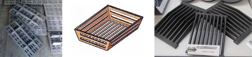 Важно, чтобы толщина прутьев выдерживала максимальный вес, а общая площадь просветов составляла 40 % от всей поверхности плиты. Это касается и наборных балочных колосников, и плит промышленного литья