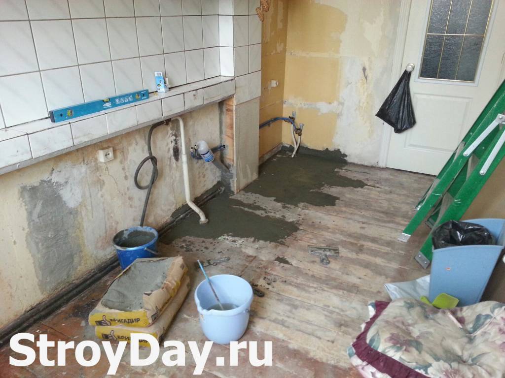 - Дыры и явные неровности в полу устранены посредством цементной стяжки. Я использовал самую дешевую.