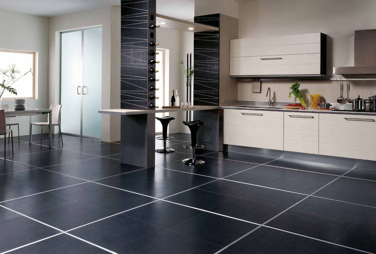 Основные характеристики пола на кухне – это прочность и долговечность. Большое значение также имеет материал его поверхности, чтобы смывать жиры и пятна. И, конечно же, пол должен вписываться в общий стиль кухни. Керамическая плитка под ногами – довольно популярное практическое решение. Прочность, долговечность, устойчивость к деформациям — безусловные плюсы данного варианта. Недостатки – при попадании на него влаги пол становится скользким, также пол холоден и плитка может треснуть.