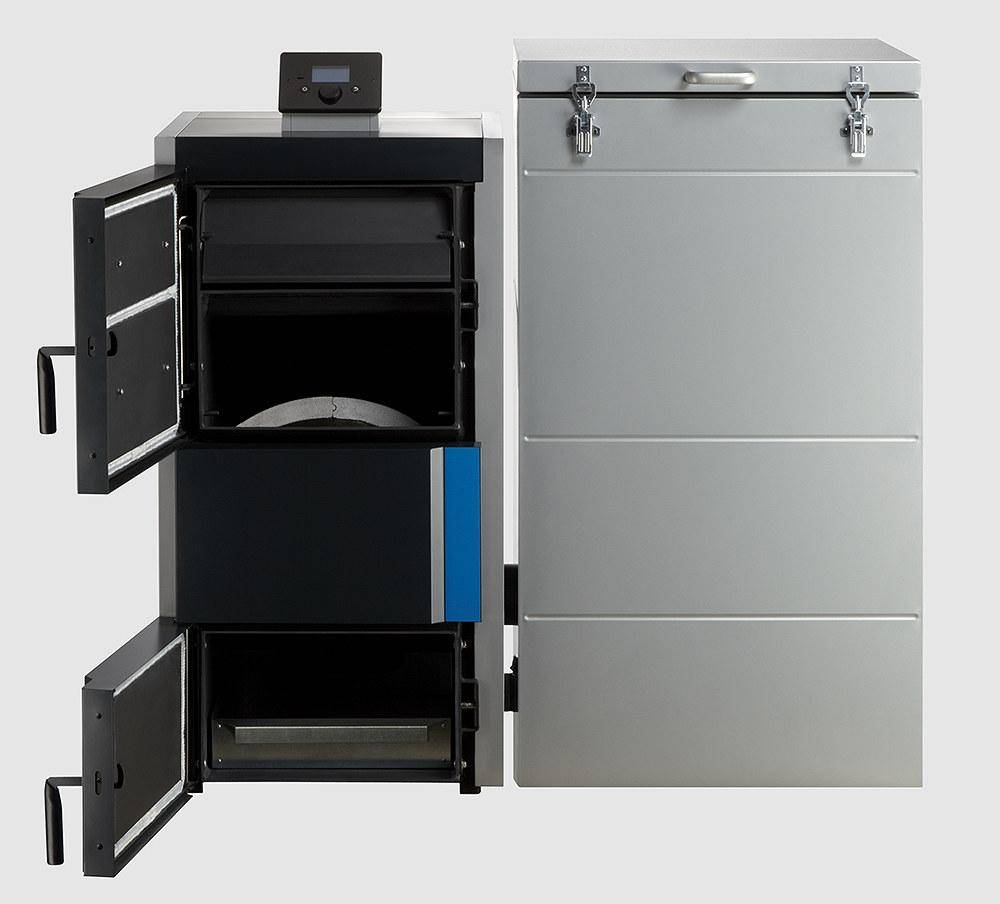 Твердотопливный котел с автоматической подачей топлива обладает такими особенностями: