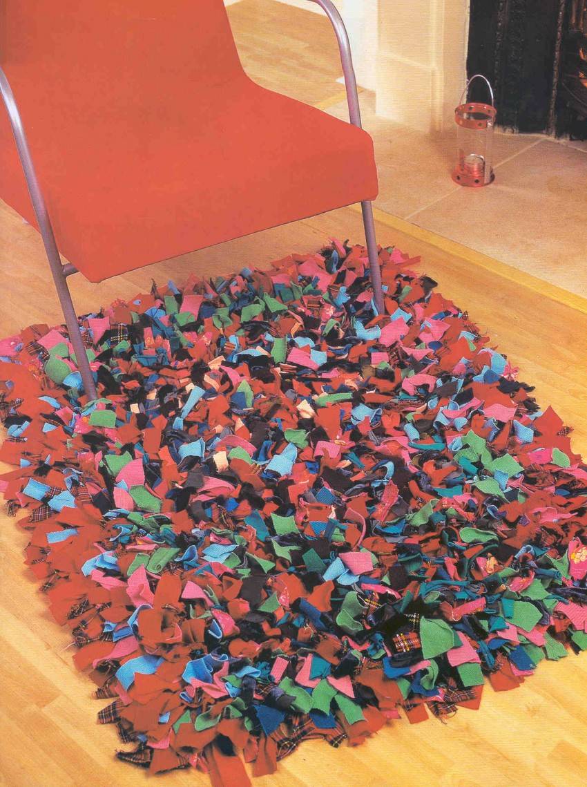 ![]() Шаг 7 | Ворс готового коврика можно подравнять ножницами, а края отделать тканью, чтобы придать ему законченный вид. Чтобы продлить срок службы коврика, можно пришить к нему снизу плотную ткань. |