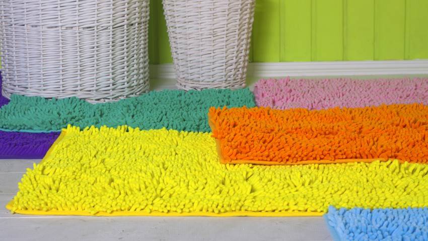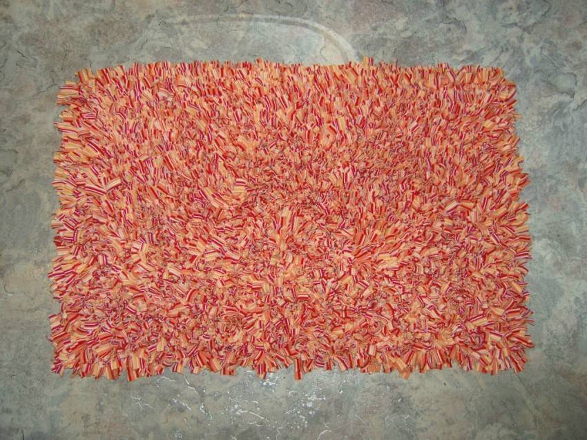 Основой для такого коврика служит строительная полипропиленовая сетка или сетка для рукоделия. Ворс можно сделать из любого мягкого не сыпучего материала – трикотажа, флиса, махровой ткани или толстых вязальных ниток. Мастерицы часто используют для его изготовления старые футболки – такой коврик отличается мягкостью и не требует лишних затрат.