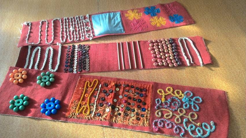 Плюсом следующего изделия является то, что можно использовать любые материалы для его изготовления: нитки разных цветов, верёвки, помпончики, тесьму, полоски из старой одежды (хорошо смотрятся джинсовые полоски), пряжа травка и т.д.